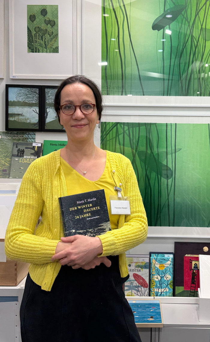 Über ihre zahllosen eigenen Projekte hinaus engagiert sich Franziska Neubert in der Künstlergruppe „augen:falter“, einem Netzwerk von Buchkünstlerinnen und betreibt mit ihrer Kollegin Petra Schuppenhauer das Label „Lieblingsdruck.de“ mit Laden und Galerie in Leipzig. Mit Petra war sie auf der diesjährigen Buchmesse vertreten und wir konnten sie für ein paar Fragen gewinnen: